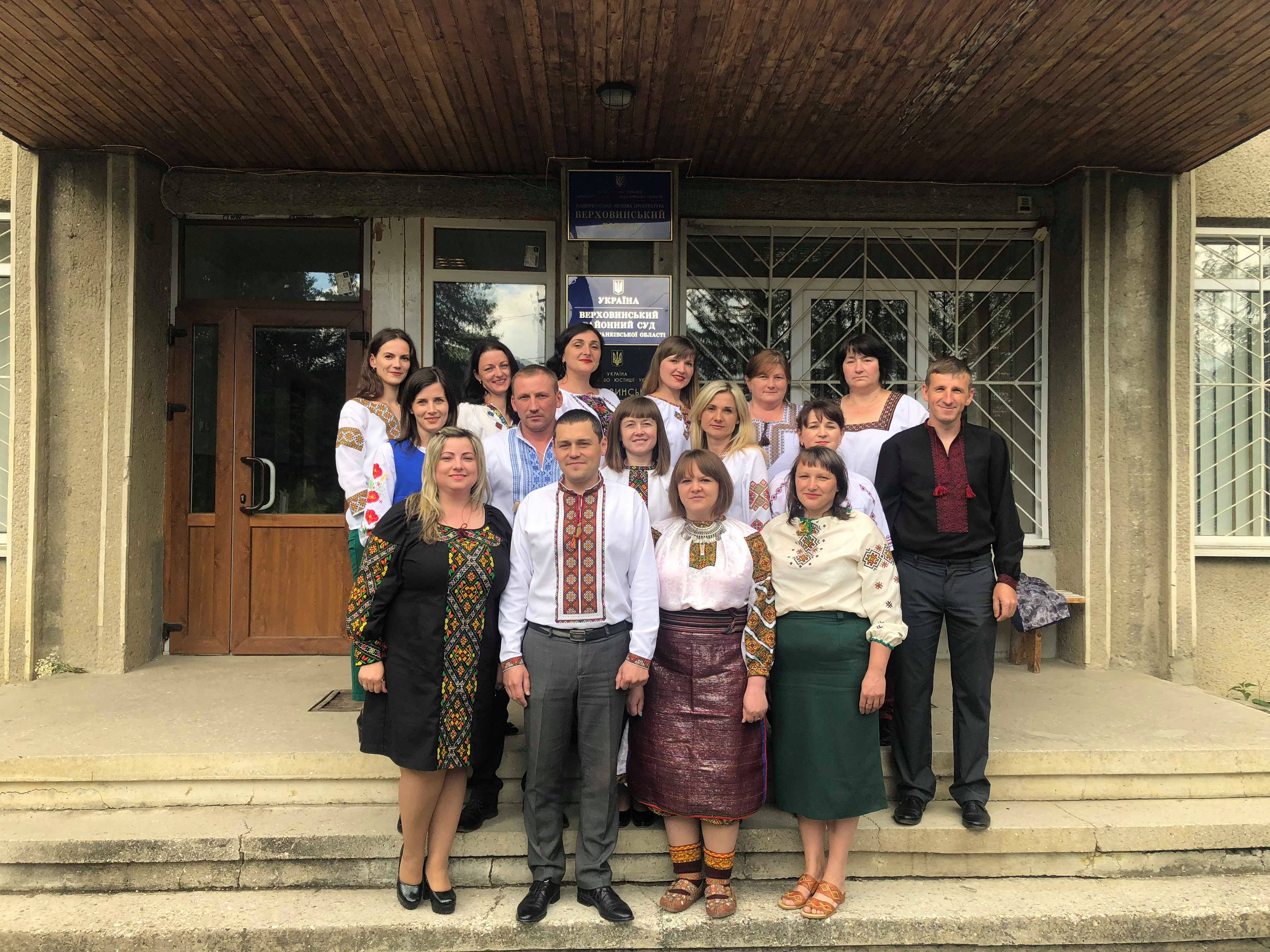До цього самобутнього та яскравого свята долучились голова та працівники Верховинського районного суду Івано-Франківської області прийшовши на роботу одягненими у вишиванки.