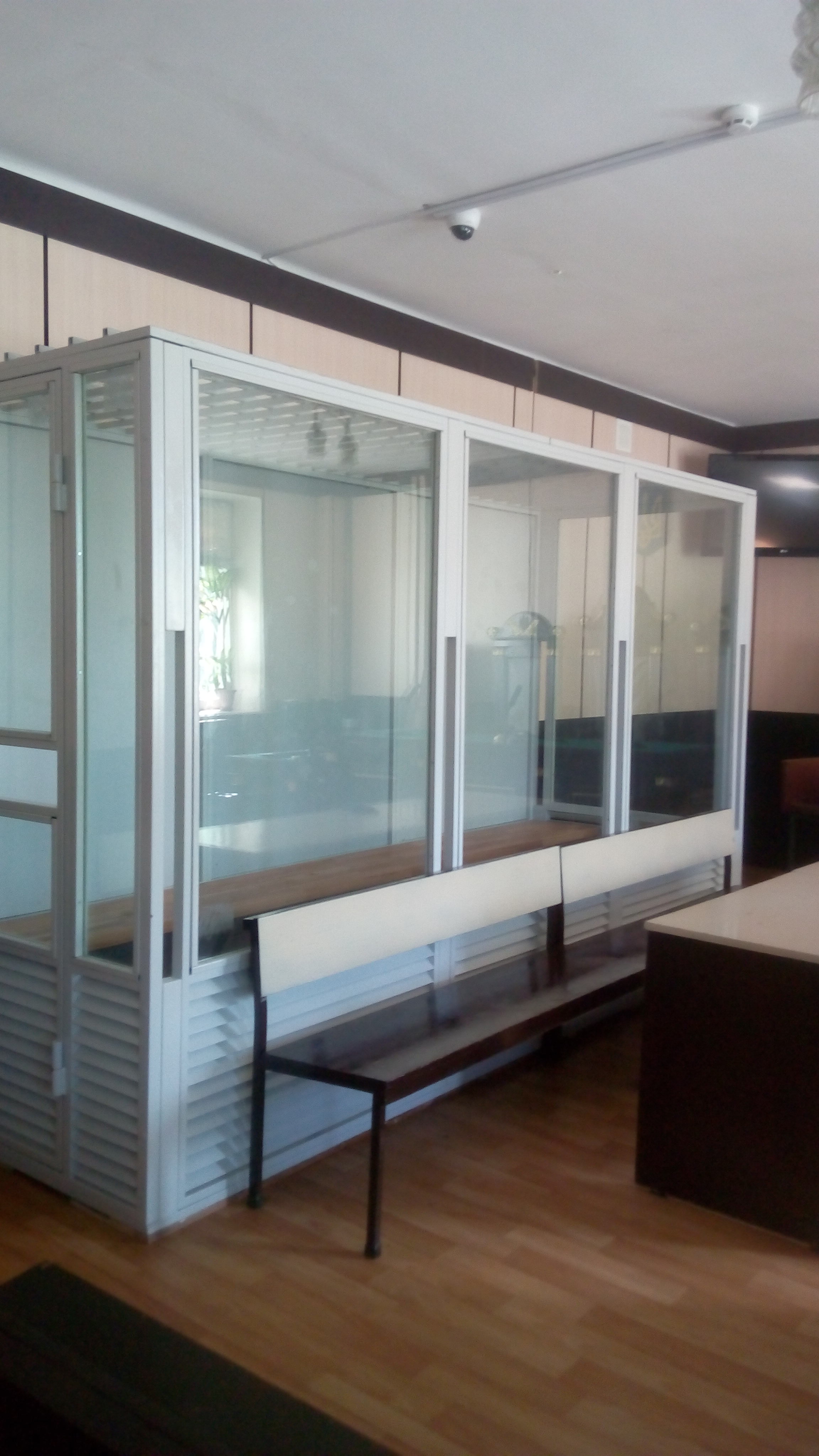 Слід зазначити, що під час проектування та виготовлення скляних кабін враховано ряд стандартів та рекомендацій Європейської комісії з прав людини щодо їх проектування, виготовлення та експлуатації. Конструкції забезпечують комфортні умови для перебування в них підсудних. Кабіни є міцними та такими, що можуть протистояти спробам ручного злому, забезпечують надійну ізоляцію підсудних, гарантований захист учасників судового засідання від протиправних дій як з боку підсудних так і по відношенню до них. Всі огородження зі скла пройшли комісійні обстеження та відповідають вимогам технічного укріплення.
