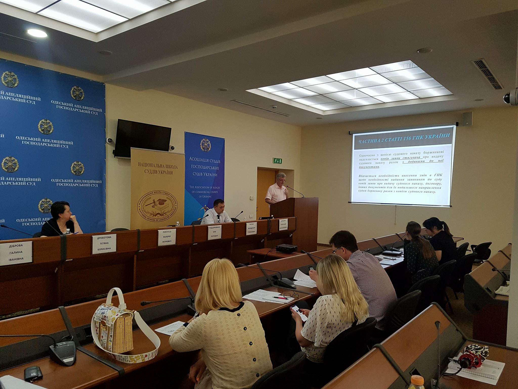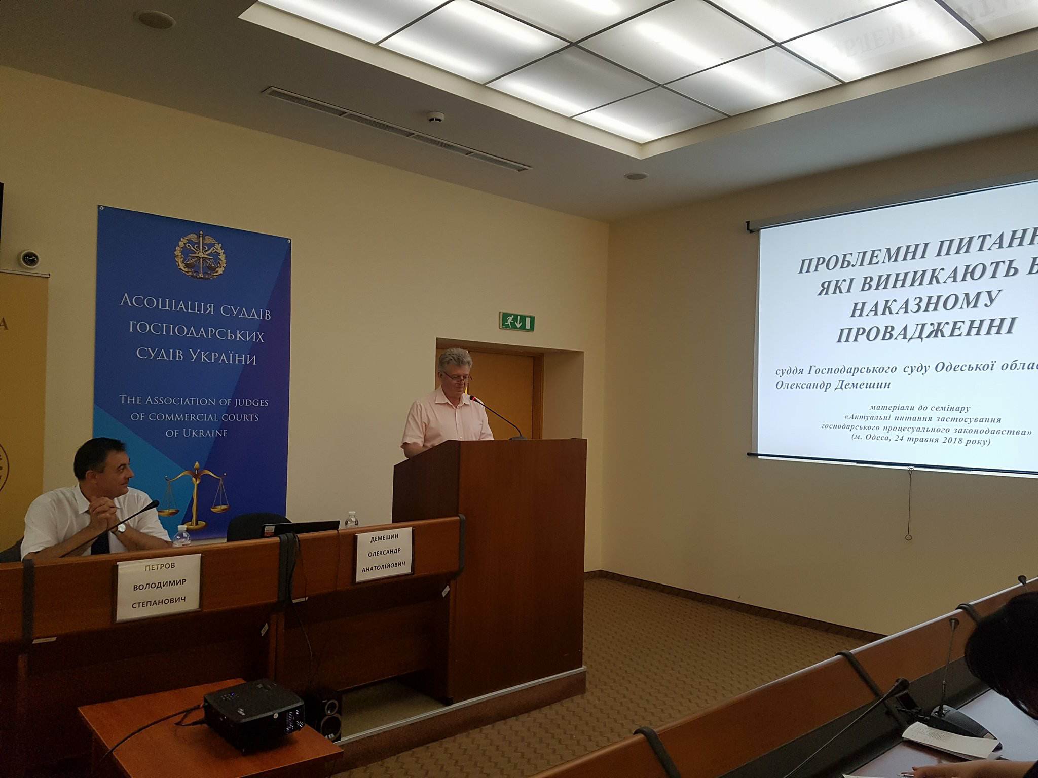 24 травня 2018 року, відбувся загальноукраїнський семінар для суддів господарських судів на тему «Актуальні питання застосування господарського процесуального законодавства», організований Одеським регіональним відділенням Національної школи суддів України спільно з Одеським апеляційним господарським судом.