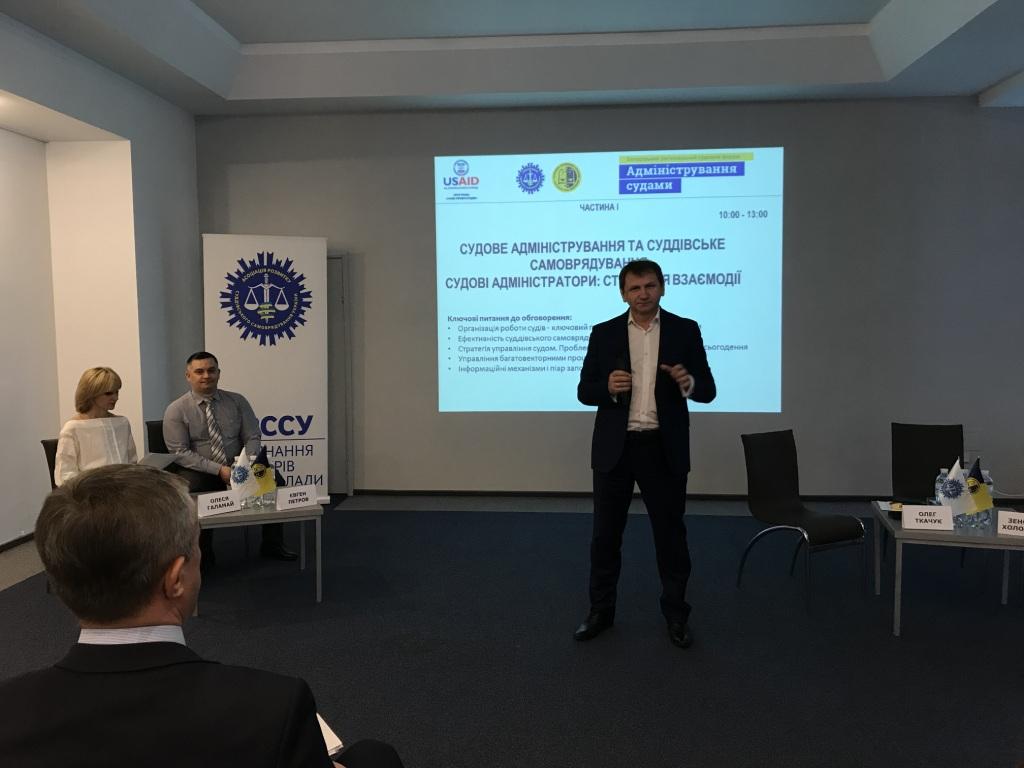У своєму виступі, присвяченому організації роботи судів, Голова Ради суддів України Олег Ткачук зазначив, що одним з пріоритетних завдань Ради суддів України є виявлення та подолання існуючих у судовій системі проблем, розробка заходів забезпечення судової незалежності, стандартизація роботи судів як державних органів та стандартизація приміщень судів.