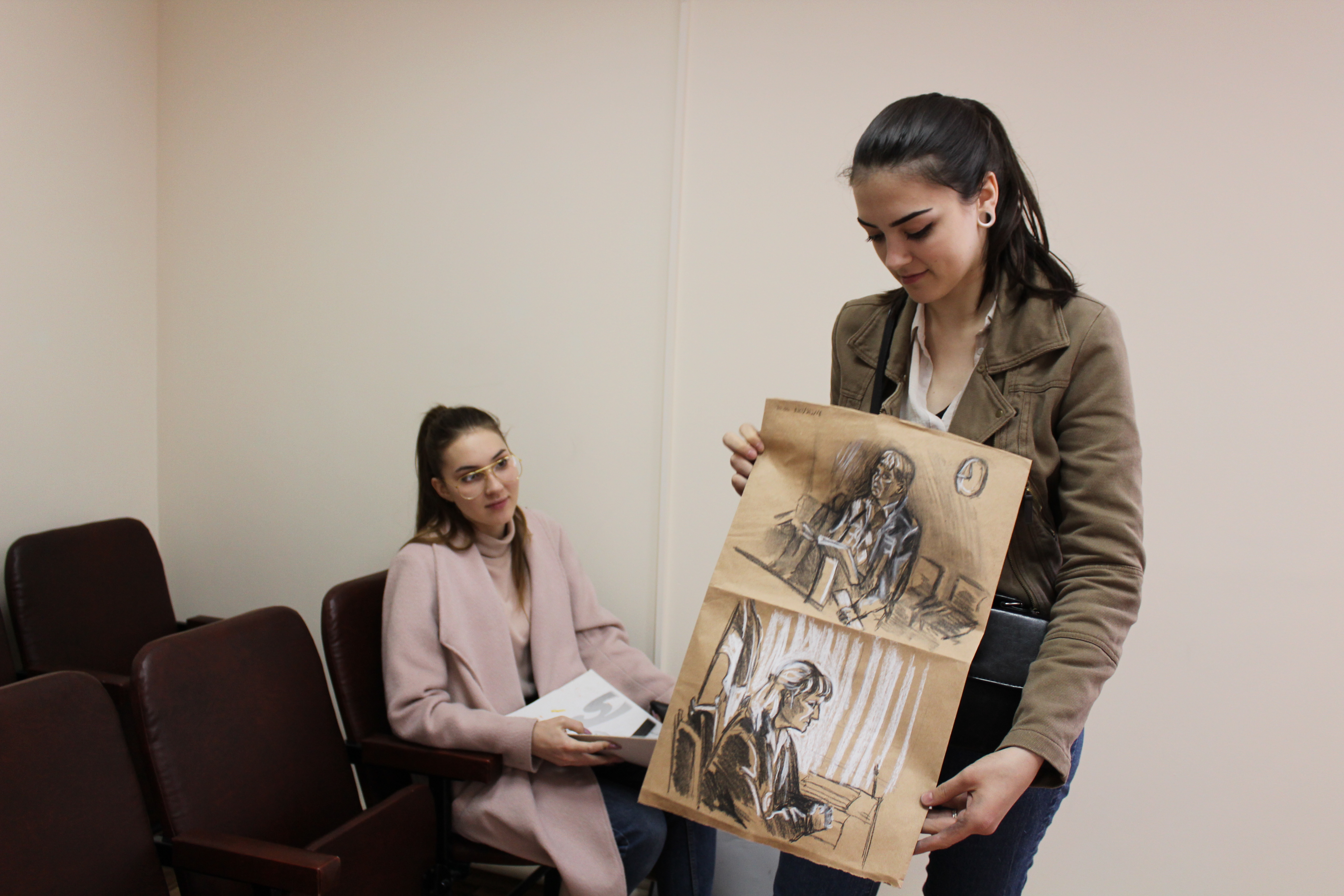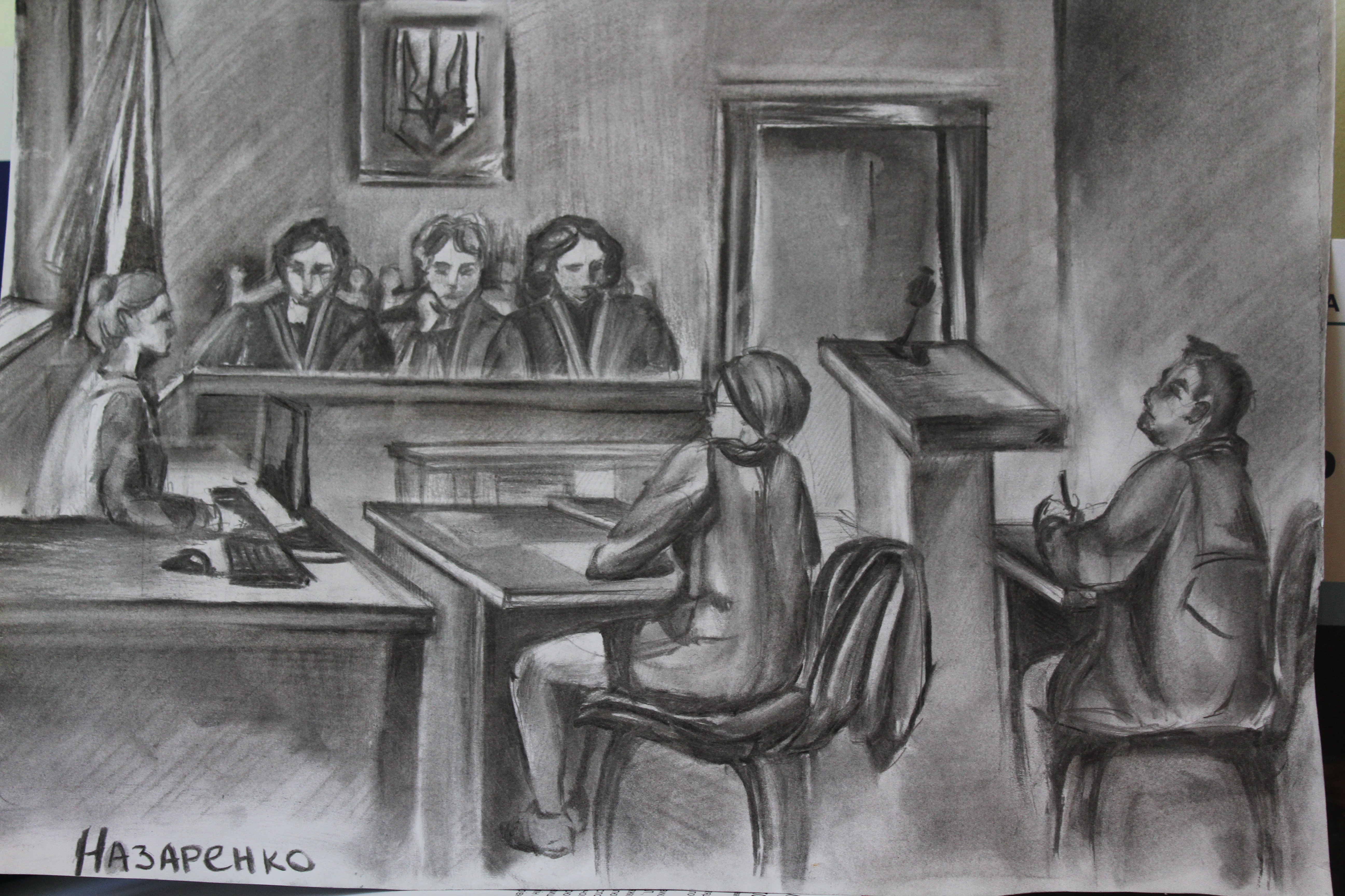 Альона Назаренко, студентка ІІІ курсу училища мистецтв та культури імені Бортнянського: «Це був чудовий досвід. Раніше не брала участь ні в чому подібному. Спочатку була страшно. А потім подумала: треба спробувати, малювати людей,  які працюють у своїй стихії. Цікаві випадки бувають і під час суду».