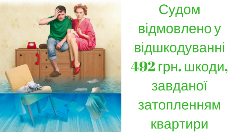 Для інформації: позивач просила стягнути відповідача 492 грн. майнової шкоди, завданої затопленням квартири, 704 грн. 80 коп. судового збору, 1000 грн. витрат на правову допомогу, 1500 грн. витрат за проведення експертизи.