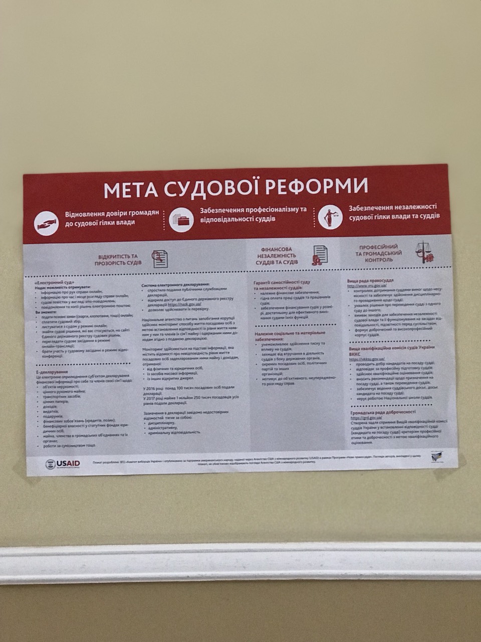 Представник всеукраїнської громадської організації “Комітет виборців України” звернувся до Чернігівського окружного адміністративного суду з пропозицією розміщення у суді інформаційного плакату щодо судової реформи, яка відбувається в Україні.