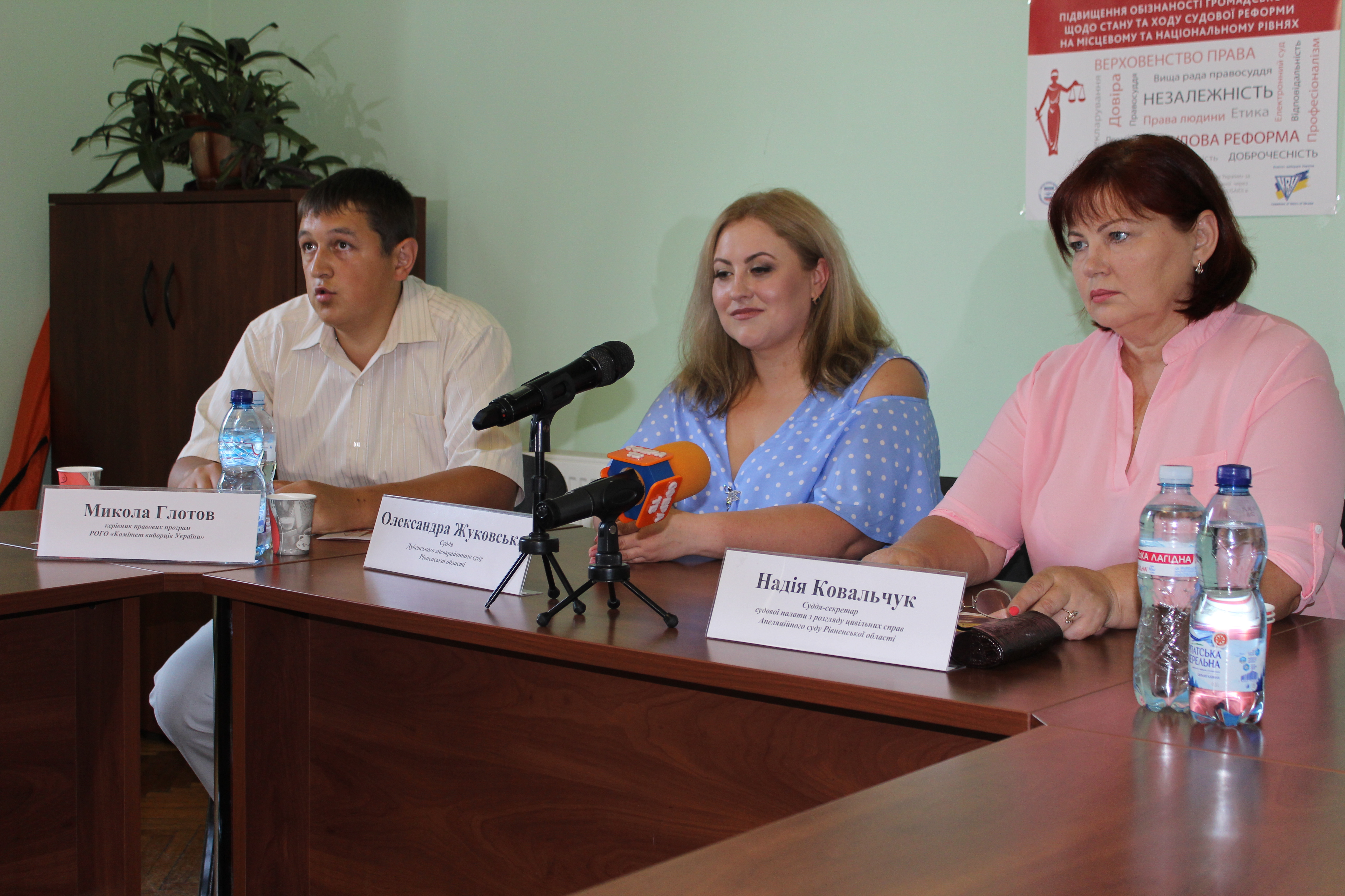 Спікерами заходу були Олександра ЖУКОВСЬКА – суддя Дубенського міськрайонного суду Рівненської області та Надія КОВАЛЬЧУК – суддя, секретар Судової палати з розгляду цивільних справ Апеляційного суду Рівненської області, Микола ГЛОТОВ – керівник правових програм Рівненської обласної громадської організації (РОГО) «Комітет виборців України», адвокат.