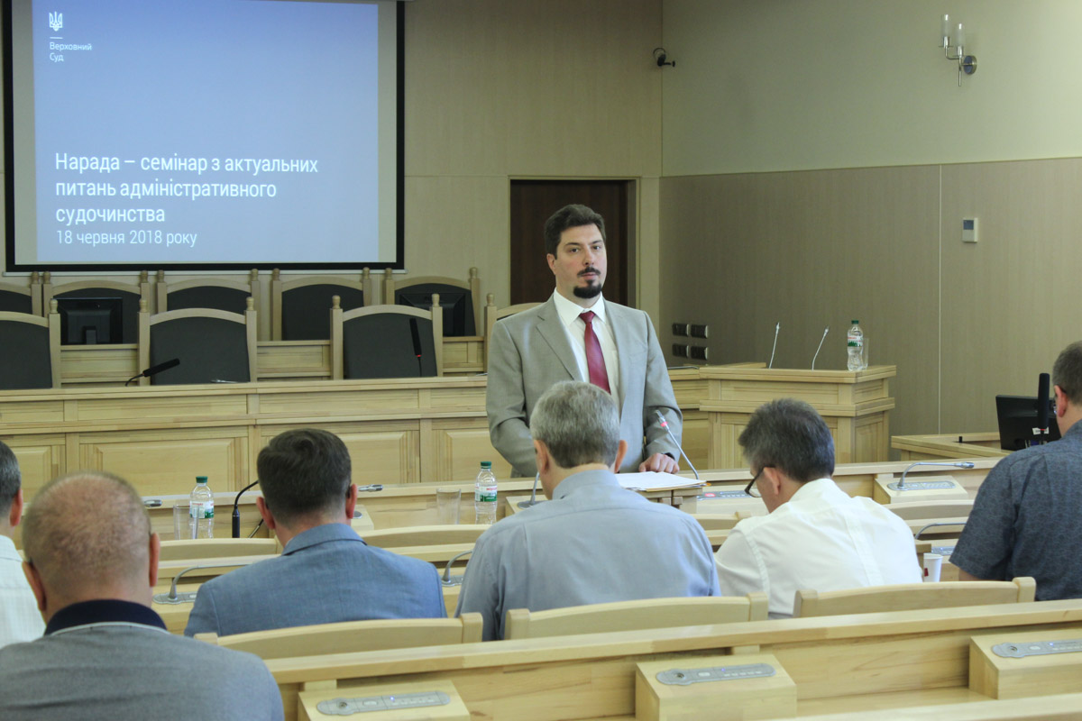 Під час наради-семінару з актуальних питань адміністративного судочинства голови окружних і апеляційних адміністративних судів ознайомилися з правовими позиціями Верховного Суду. Захід відбувся 18 червня 2018 року у приміщенні Касаційного адміністративного суду.