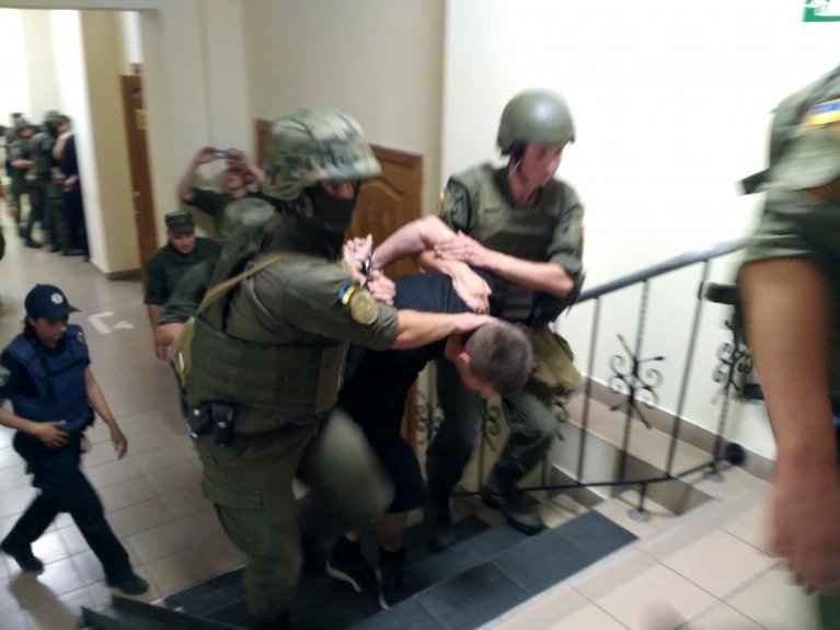 21 червня з 12 до 13 години відвідувачі суду та випадкові перехожі могли спостерігати, як озброєні силовики проводили «затримання» умовних порушників порядку.