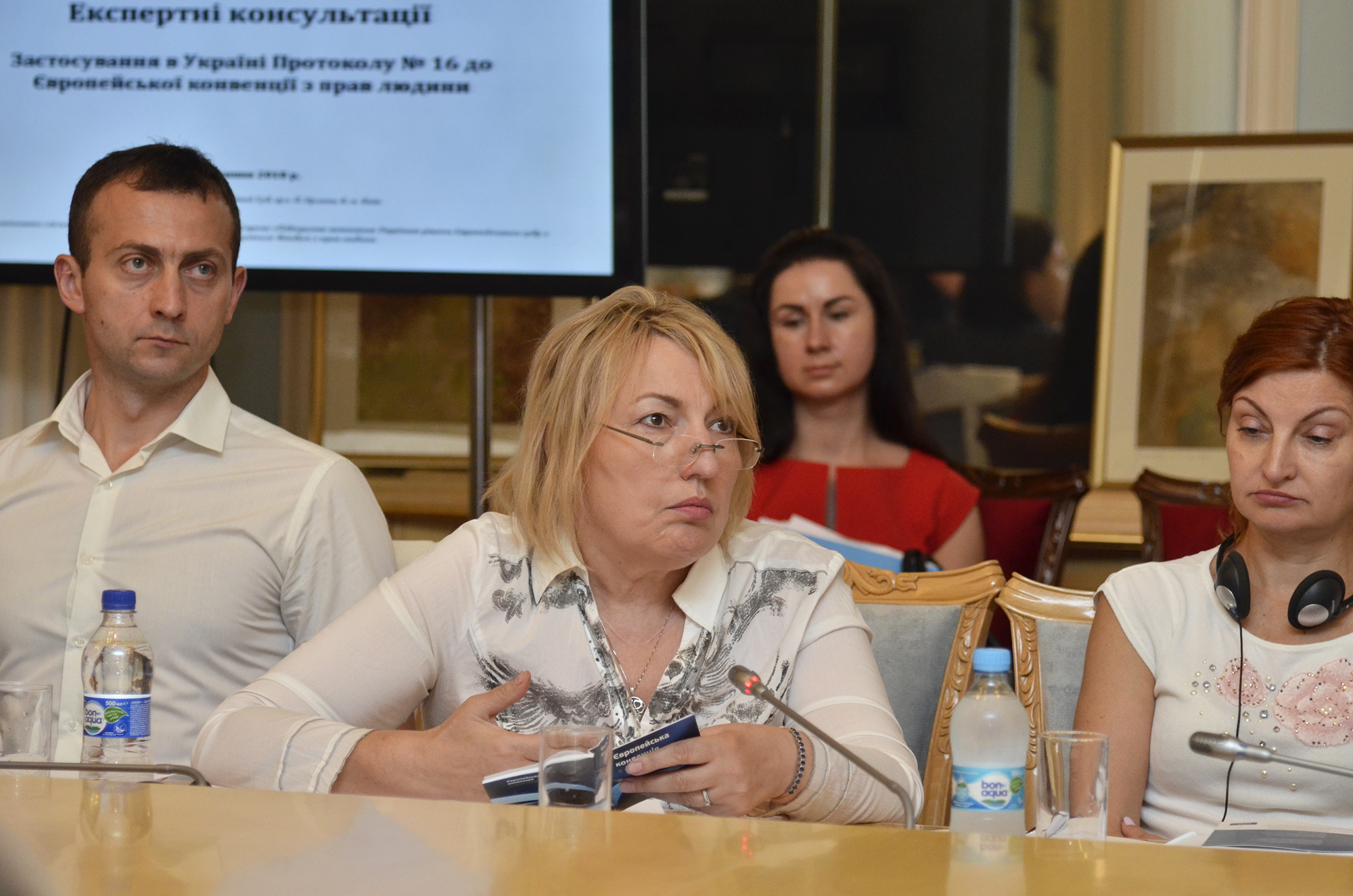 Учасники заходу обговорюють механізми отримання консультативних висновків ЄСПЛ на підставі Протоколу № 16 до Конвенції та зміни до законодавства України, які мають бути прийняті з метою ефективного застосування цього Протоколу.