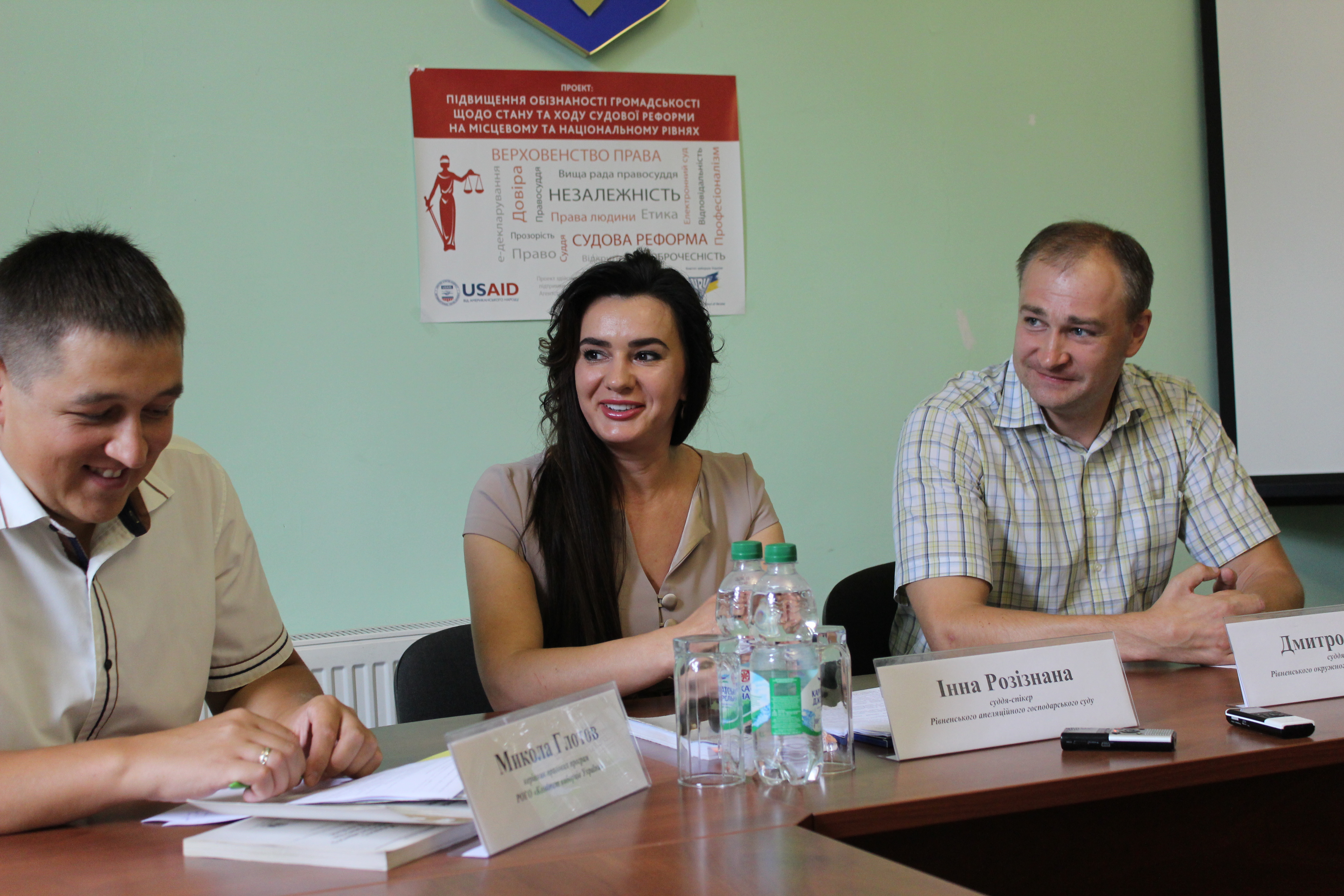 Захід проводився в рамках проекту «Підвищення обізнаності громадськості щодо стану та ходу судової реформи на місцевому та національному рівнях», що виконує Всеукраїнська громадська організація «Комітет виборців України», в рамках Програми Агентства США з міжнародного розвитку (USAID) «Нове правосуддя».