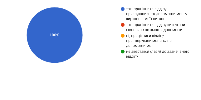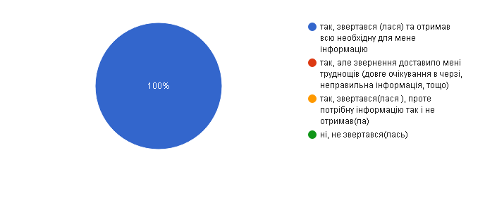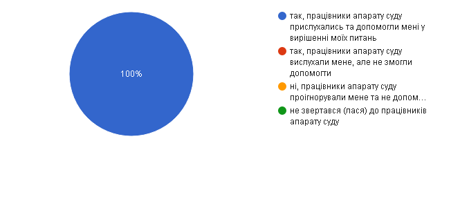 У четвертому блоці питань, що стосуються надання канцеларією суду інформації по зверненням, респонденти оцінили роботу працівників канцелярії на 100% вказавши, що їм було надано всю необхідну інформацію.