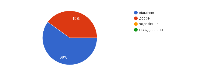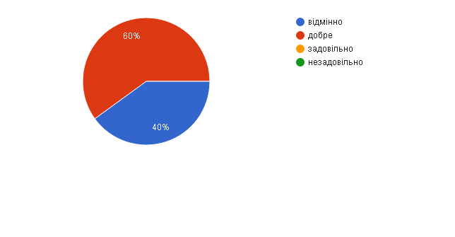 Враховуючи вищезазначені відомості можна відзначити, що вцілому учасники анонімного опитування організацією роботи суду задоволені. 40 % опитуваних у двадцять першому блоці питань дали оцінку "відмінно", 60 % - оцінку "добре".