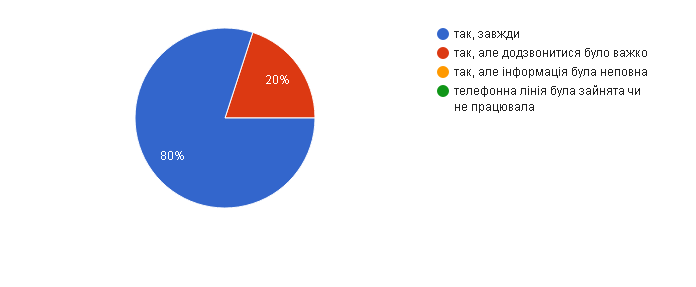 У п"ятому блоці питань 20 % респондентів вказали, що при зверненні до суду для отримання інформації в телефонному режимі дана інформація їм була надана, однак дозвонитись до суду їм було важко. 80% опитуваних отримали інформацію за телефоном без жодних ускладнень.