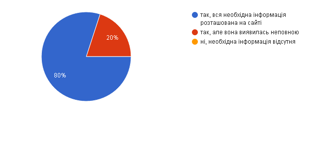 80 % респондентів зазначили у восьмому блоці питань, що знайшли на web-сайті Коростенського міськрайонного суду всю необхіду інформацію. 20 % опитуваних також отримали інформацію, але вважають її неповною.