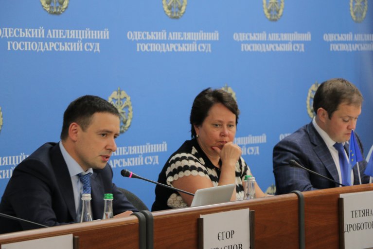З вітальним словом до гостей звернулись голова Одеського апеляційного господарського суду, голова ГО «Асоціація суддів господарських судів України» Наталія Богацька, керівник зазначеного Проекту Довидас Віткаускас, Президент АПУ (2013–2017), партнер VB PARTNERS Денис Бугай, директор Департаменту з питань правосуддя та національної безпеки Міністерства юстиції України Олександр Олійник, суддя КГС ВС – секретар судової палати для розгляду справ щодо земельних відносин та права власності Тетяна Дроботова та суддя КГС ВС, голова Комітету РСУ з питань дотримання етичних норм, запобігання корупції і врегулювання конфлікту інтересів Єгор Краснов.
