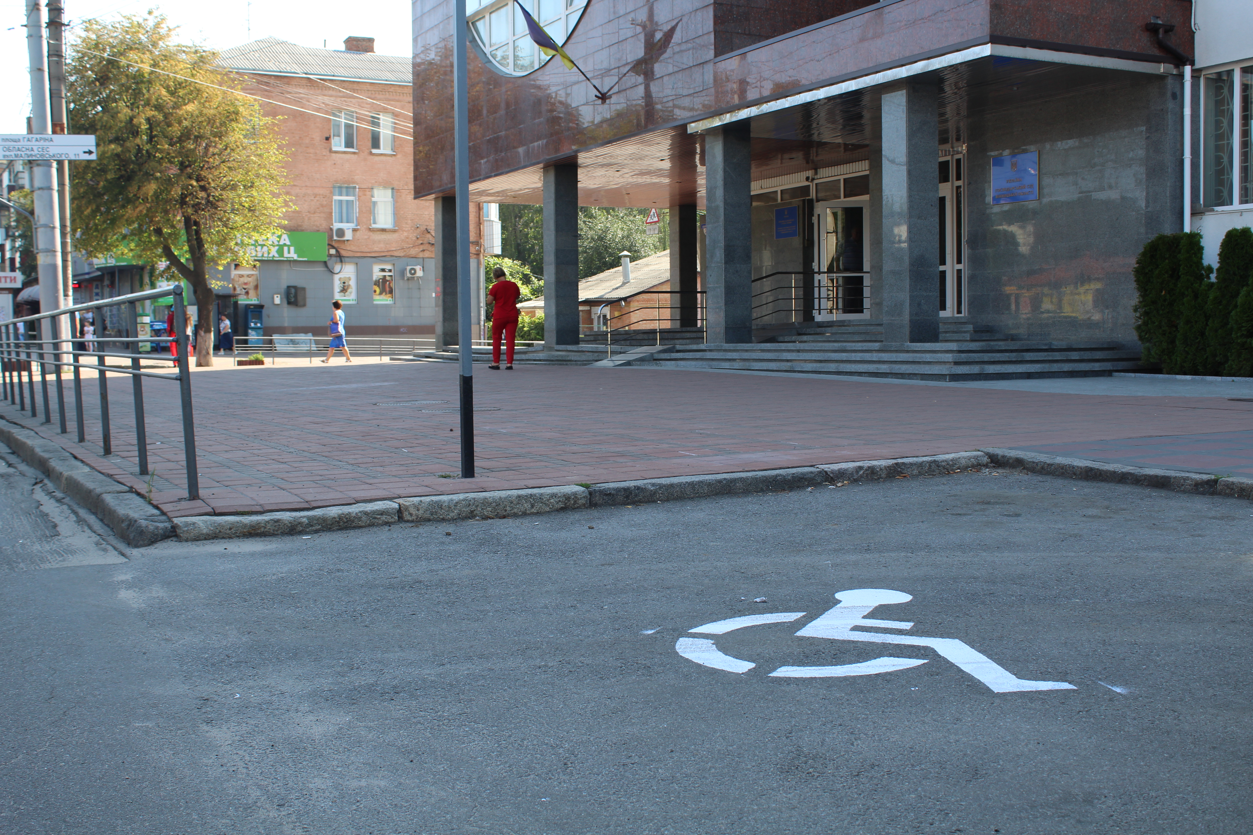 З урахуванням потреб людей з обмеженими фізичними можливостями біля приміщення суду виділено спеціальне місце для паркування транспортних засобів людей з інвалідністю, що розміщене максимально близько до входу у відповідності до вимог Закону України «Про основи соціальної захищеності інвалідів в Україні».