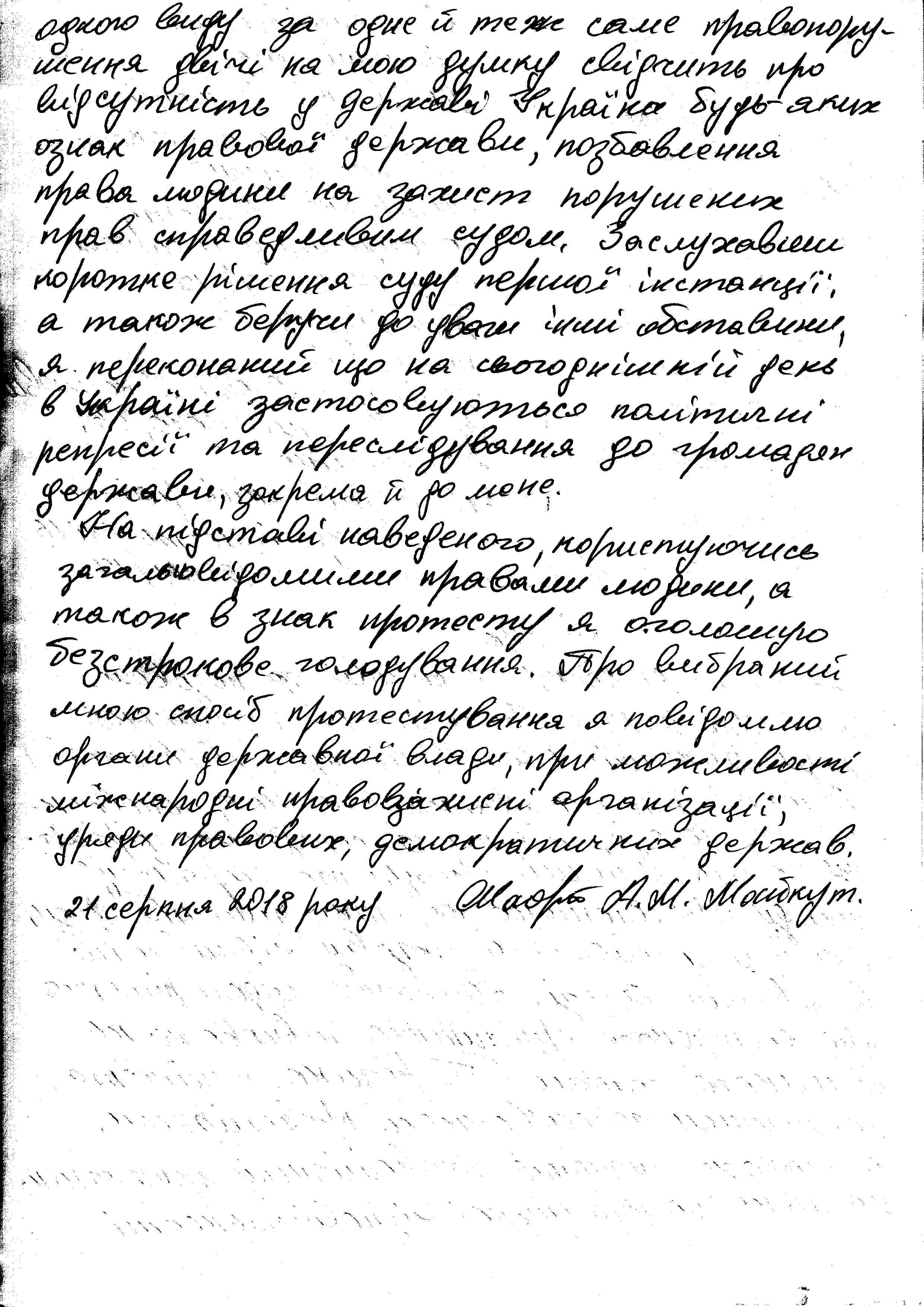 В знак протесту проти прийнятого судом рішення гр.Майкут А.М. оголосив голодування, про що повідомив суд у відповідній заяві.