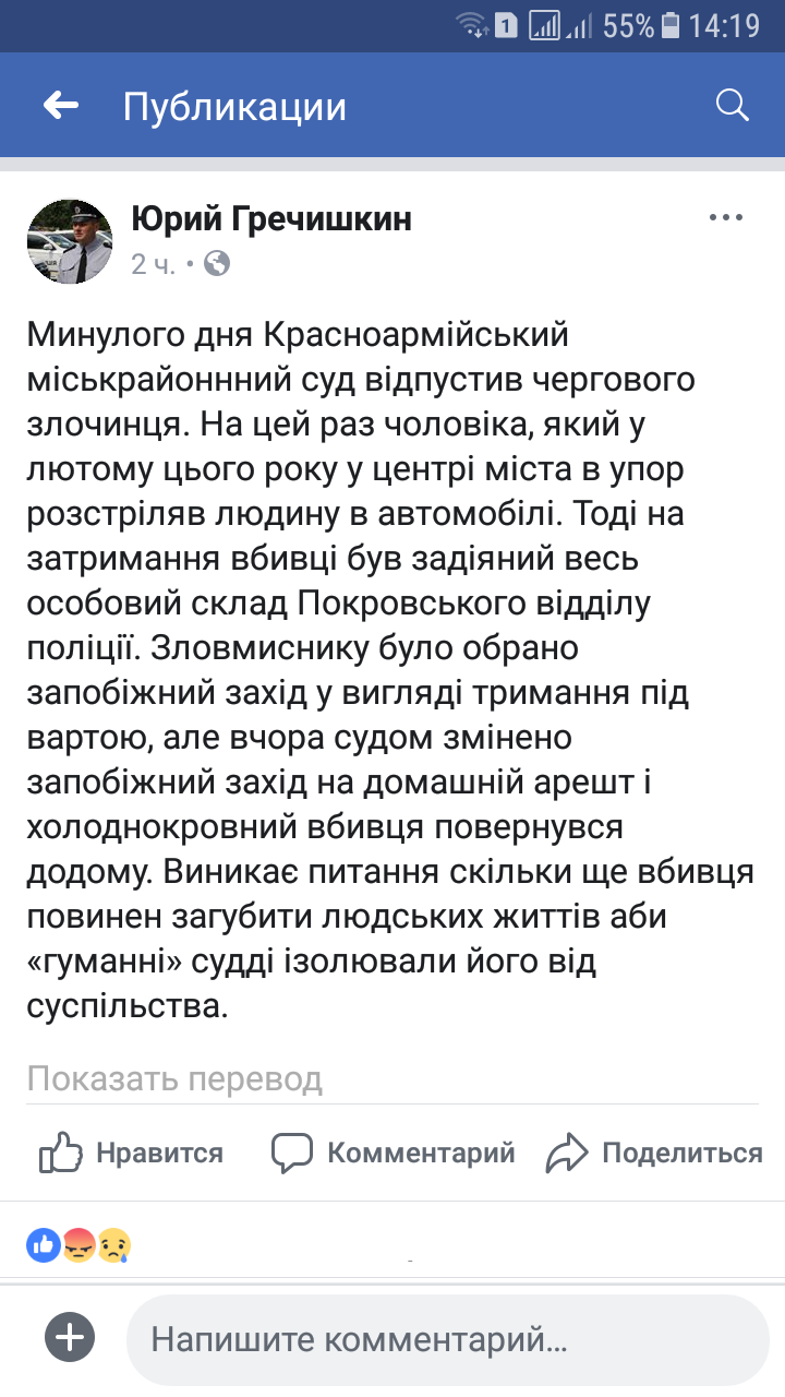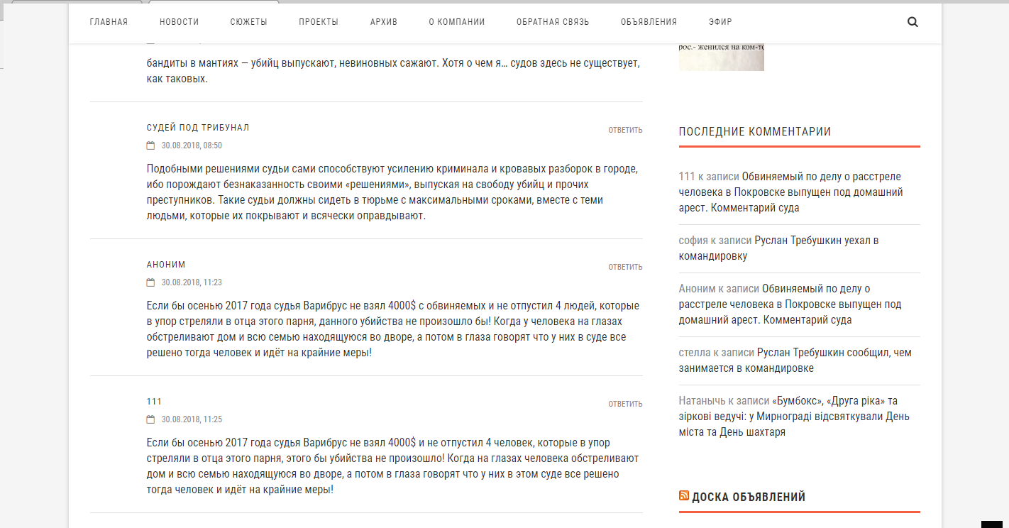 Проте, сьогодні, 30 серпня 2018 року, в коментарях до статті «Обвиняемый по делу о расстреле человека в Покровске выпущен под домашний арест. Комментарий суда», опублікованої на сайті ТК «Орбіта», знову викладена інформація, яка не відповідає достовірності.