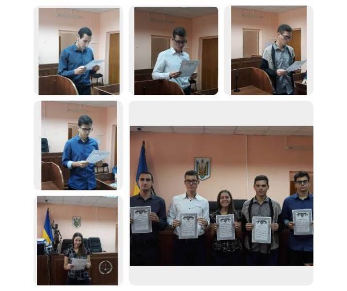 Молоді фахівці – Карпенко Валентин Русланович, Гайворонський Владислав Миколайович, Раєвський Павло Анатолійович, Ковтуненко Владислав Віталійович та Швидка Аліна Вячеславівна, за результатами конкурсу призначені на посади секретарів судового засідання, публічно склали Присягу, текст якої наведено у статті 36 Закону України «Про державну службу».