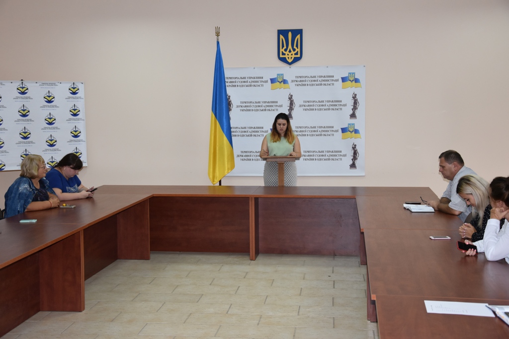 В територіальному управлінні, відповідно до ст. 36 Закону України «Про державну службу» - Лушкіна Ганна, яка була призначена на посаду державної служби вперше, в присутності держаних службовців територіального управління Державної судової адміністрації України в Одеській області та спеціалістів сектору по роботі з персоналом виголосила Присягу державного службовця.