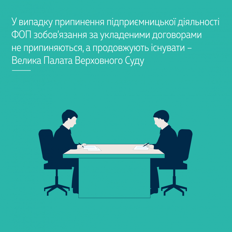 За змістом ст. 51, 52, 598–609 Цивільного кодексу України, ст. 202–208 Господарського кодексу України, ч. 8 ст. 4 Закону України від 15 травня 2003 року № 755-IV «Про державну реєстрацію юридичних осіб, фізичних осіб – підприємців та громадських формувань» у випадку припинення підприємницької діяльності ФОП (із внесенням до Єдиного державного реєстру юридичних осіб, фізичних осіб – підприємців та громадських формувань запису про державну реєстрацію такого припинення)господарські зобов’язання за укладеними договорами не припиняються, а продовжують існувати, оскільки фізична особа не перестає існувати та відповідає за зобов’язаннями, пов’язаними з підприємницькою діяльністю, усім майном.