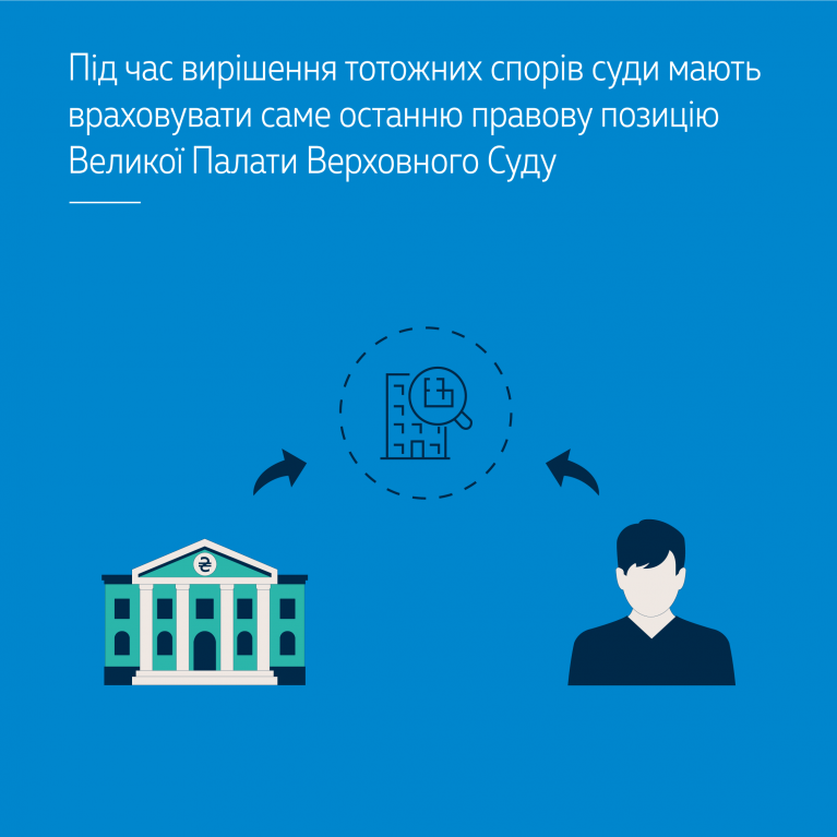 Велика Палата Верховного Суду зазначає, що незалежно від того чи перераховані всі постанови, у яких викладена правова позиція, від якої відступила ВП ВС, суди під час вирішення тотожних спорів мають враховувати саме останню правову позицію ВП ВС.