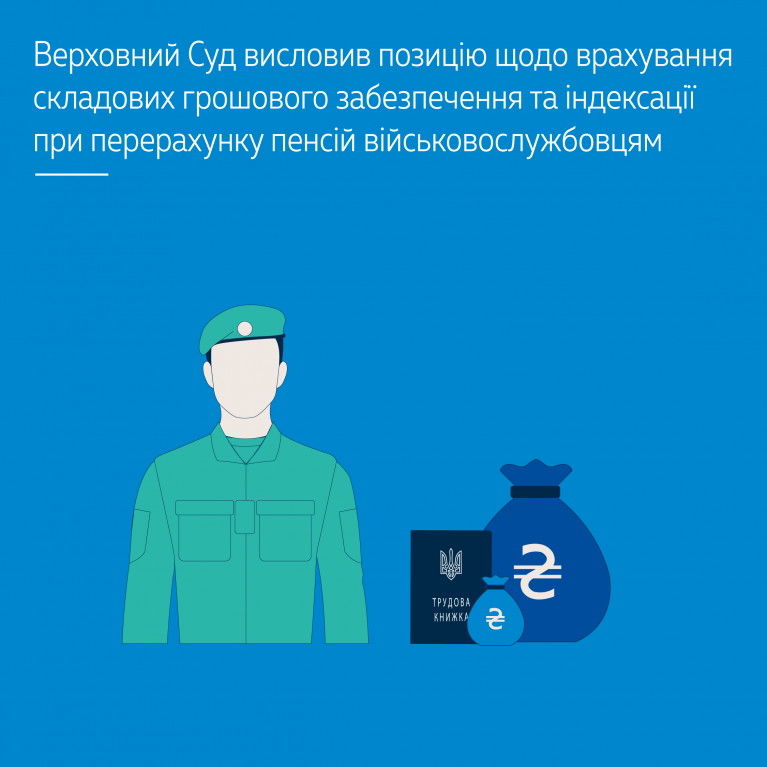 Водночас Верховний Суд підтримав правову позицію Великої Палати Верховного Суду (провадження № 11-806апп18), відповідно до якої при обчисленні пенсії не враховується такий складовий елемент грошового забезпечення, як одноразові додаткові види грошового забезпечення, зокрема щорічні, щоквартальні, разові додаткові види грошового забезпечення, крім щомісячних, або тих, що виплачуються раз на місяць. При цьому факт сплати єдиного внеску не є безумовною підставою для включення виплати, з якої цей внесок утримано, до грошового забезпечення, з розміру якого обчислюється пенсія, та має значення лише для включення до цього грошового забезпечення його видів з переліку, визначеного ст. 43 Закону України «Про пенсійне забезпечення осіб звільнених з військової служби та деяких інших осіб», який є вичерпним.