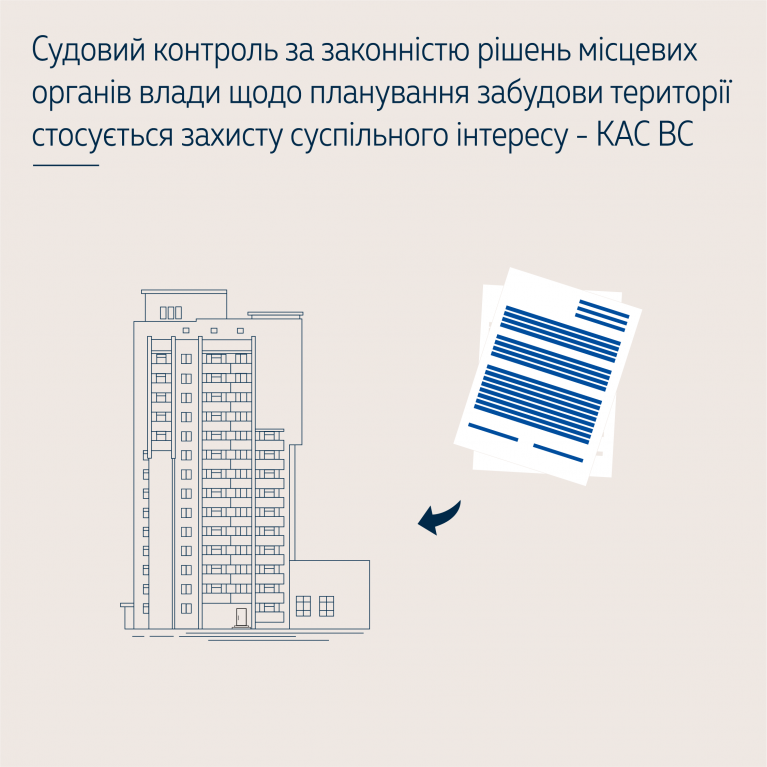Окрім того, Верховний Суд звернув увагу, що спірна земельна ділянка рішенням виконкому надана товариству для будівництва та обслуговування багатоквартирного житлового будинку висотою до 30 м (поверховість до дев’яти поверхів). У подальшому рішенням виконкому за заявою замовника було внесено зміни до містобудівних умов та обмежень та встановлено допустиму висоту житлової будівлі до 46,9 м та поверховість вище дев’яти поверхів.