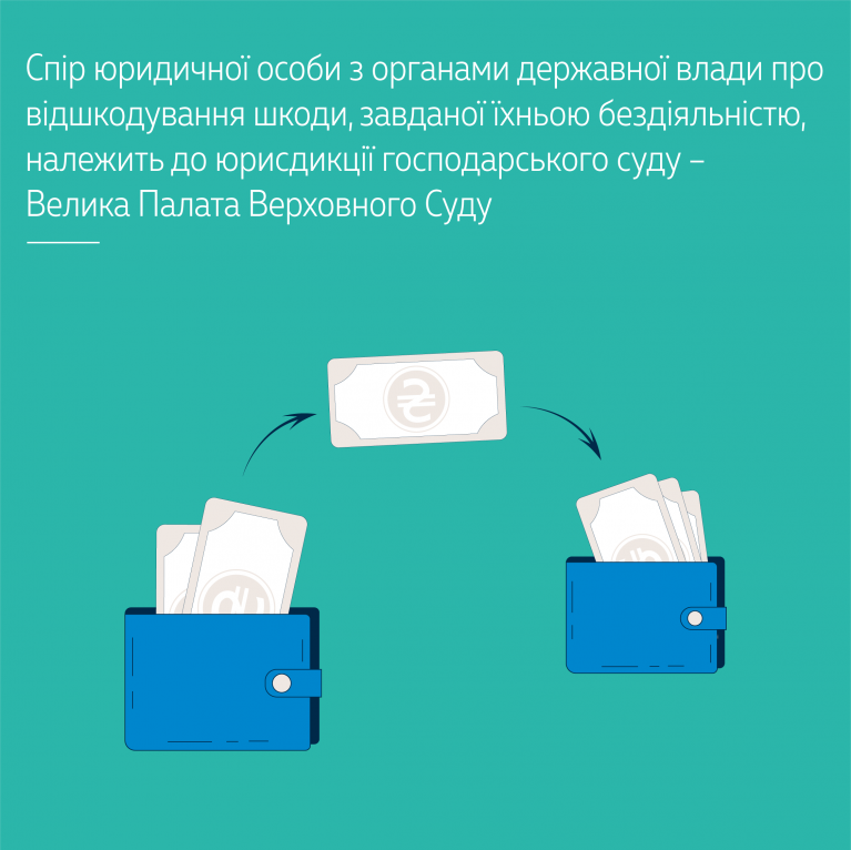 ВП ВС дійшла висновку, що доводи позивача про відсутність юрисдикції господарського суду щодо вирішення спору за заявленою ТОВ вимогою є необґрунтованими. За суб’єктним критерієм згідно з ч. 1 ст. 4 ГПК України спір ТОВ з органами державної влади, які є юридичними особами, про відшкодування шкоди належить до юрисдикції господарського суду.
