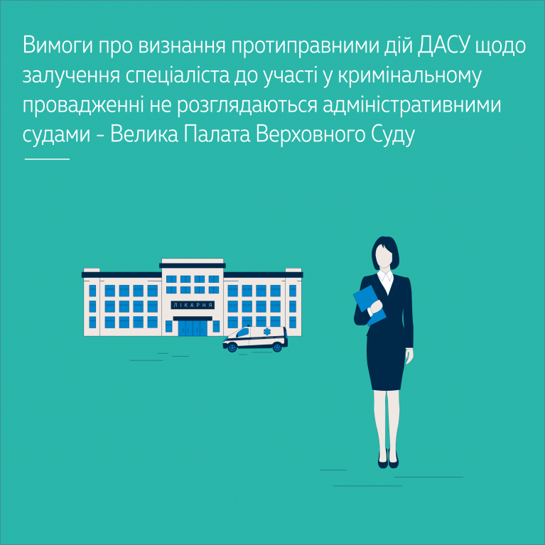 Незгода особи із залученням спеціаліста під час досудового розслідування в рамках кримінального провадження може бути висловлена у цьому провадженні. Вимога про визнання протиправними дій ДАСУ щодо виділення її службової особи як спеціаліста для участі у перевірці з питань дотримання законодавства у кримінальному провадженні не може розглядатися за правилами адміністративного судочинства.