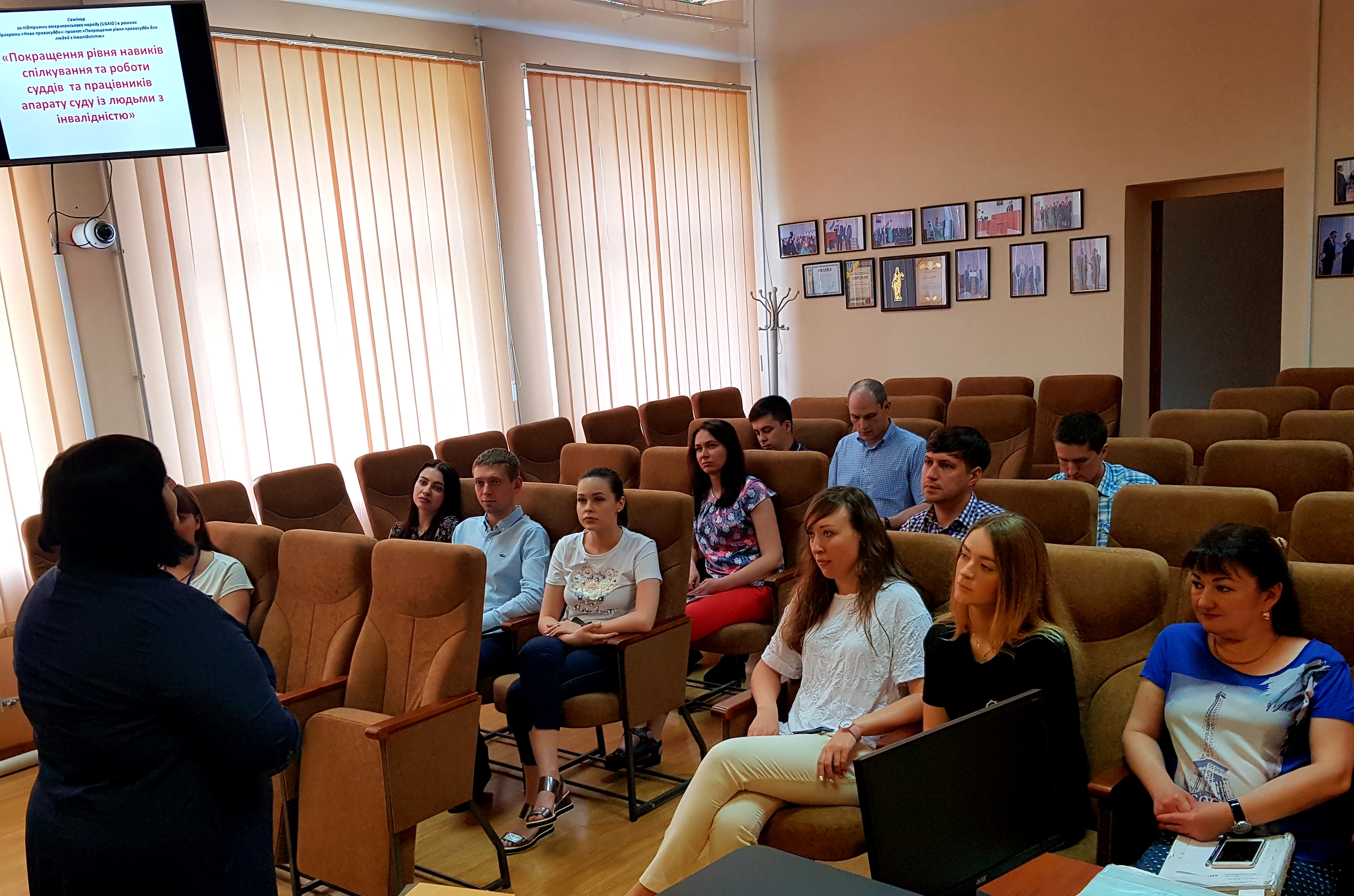 24 травня 2019 року у приміщенні Луганського апеляційного суду відбулись тренінги на тему «Вдосконалення комунікаційних навичок судових адміністраторів та суддів у роботі з людьми з обмеженими можливостями». Під час тренінгів їх учасники розглянули питання правового статусу людей з інвалідністю, комунікативно-психологічні особливості взаємодії із людьми з інвалідністю, фізичну доступність будівель і приміщень суду для людей з інвалідністю та маломобільних груп населення у Луганській області.