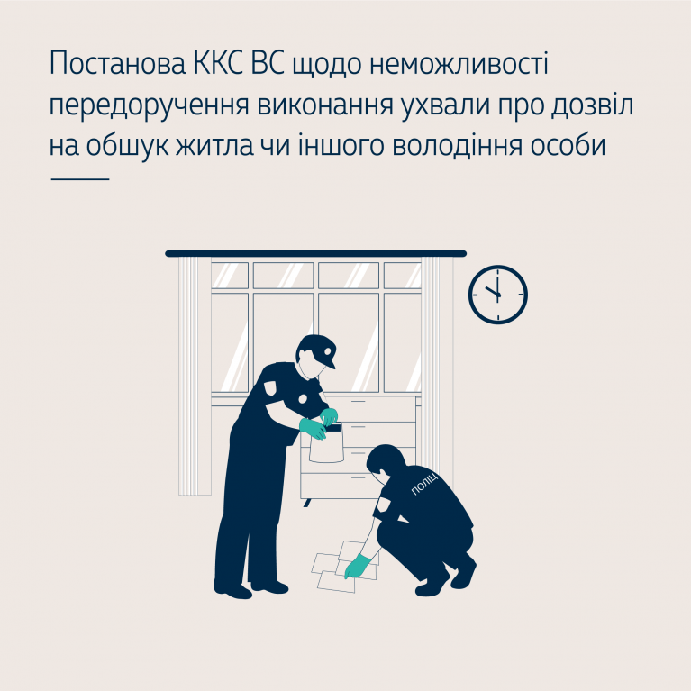 Як убачається з матеріалів кримінального провадження, ухвалою слідчого судді місцевого суду дозвіл на проведення обшуку у квартирі чоловіка було надано слідчому СВ відділу поліції. Тобто саме він згідно з умовами дозволу був уповноважений на проведення вказаної слідчої дії. Незважаючи на це, обшук у житлі особи фактично був проведений оперативним підрозділом управління кіберполіції без участі слідчого.