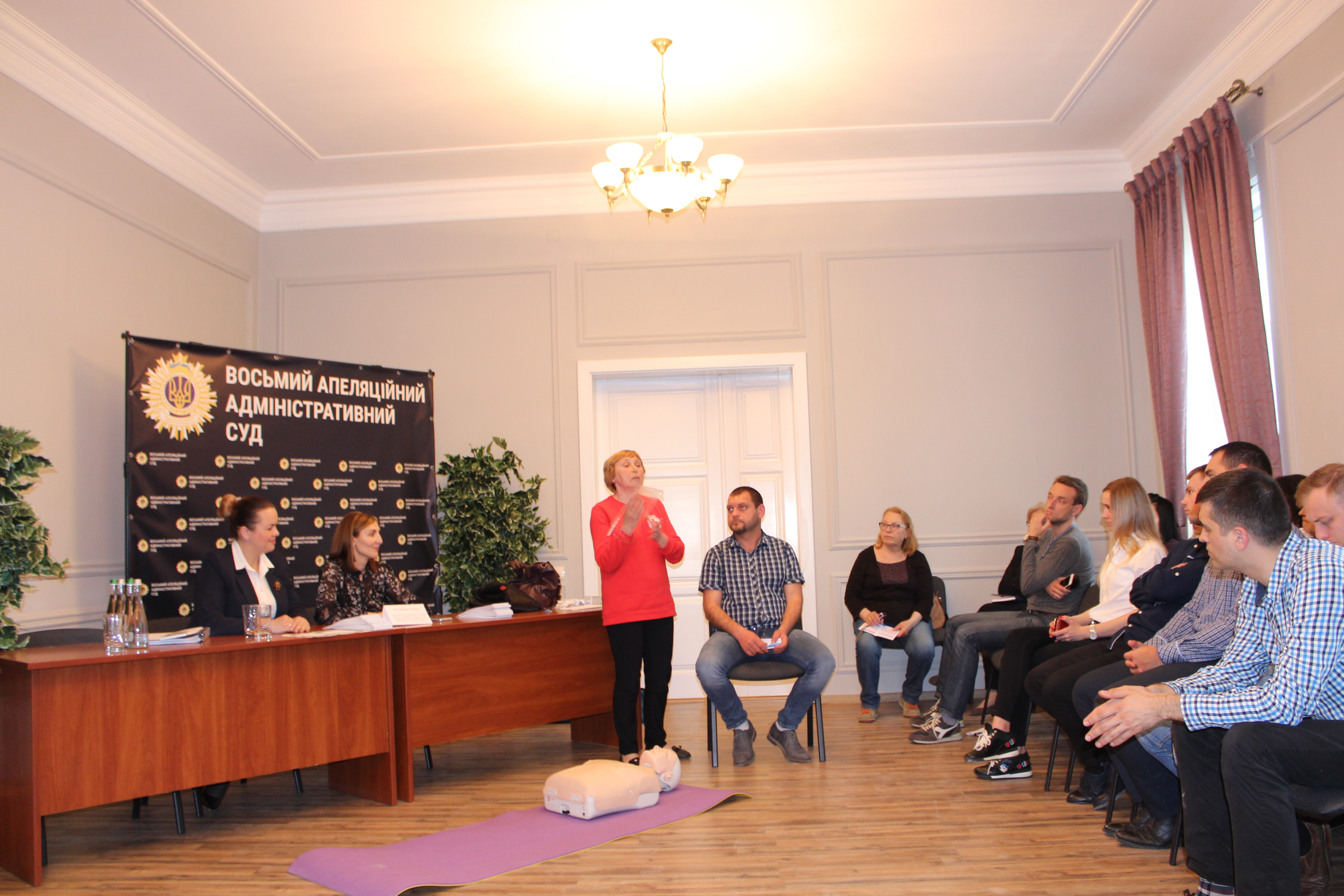 Нагадаємо, нещодавно представники суду (загалом – 20 осіб) вже відвідували такий захід, що проходив у приміщенні Західного апеляційного господарського суду. На жаль, тоді не всі бажаючі мали можливість взяти участь у навчанні. З огляду на актуальність теми та важливість отримання теоретичних знань і практичних навичок для максимально широкого кола працівників суду, сьогодні пройшли підготовку ще 37 осіб.