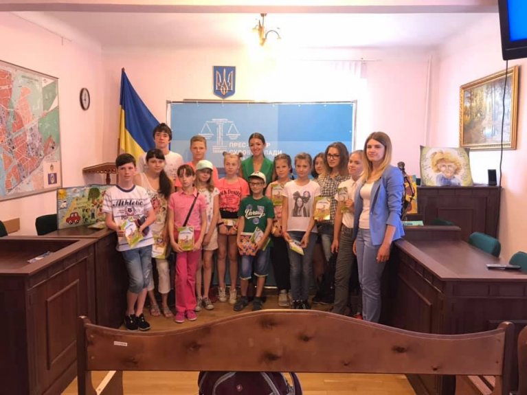 Зустріла дітей, розповіла про роботу суду та провела екскурсію, під час якої діти відвідали канцелярії суду, зали судових засідань та кабінет судді - прес-секретар суду Ольга Бовкун.