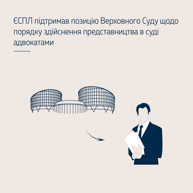 ЄСПЛ також акцентував, що вимога стосовно представництва скаржника перед судом касаційної інстанції саме адвокатом не може вважатися такою, що суперечить положенням статті 6 Конвенції. Ця вимога цілком відповідає особливостям Верховного Суду як вищого суду, який розглядає апеляції з питань права, що є спільною рисою правових систем для ряду держав-членів Ради Європи.