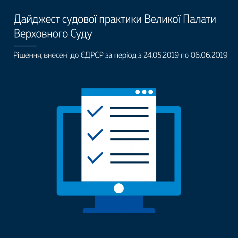 Дайджест містить огляд актуальних позицій Великої Палати Верховного Суду, оприлюднених з 24 травня по 6 червня 2019 року.