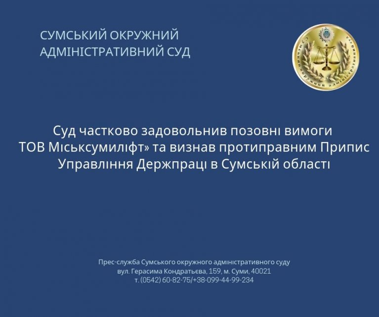 24 червня 2019 року Сумський окружний адміністративний суд розглянув адміністративну справу 480/657/19 за позовом Товариства з обмеженою відповідальністю "Міськсумиліфт" до Управління Держпраці у Сумській області.