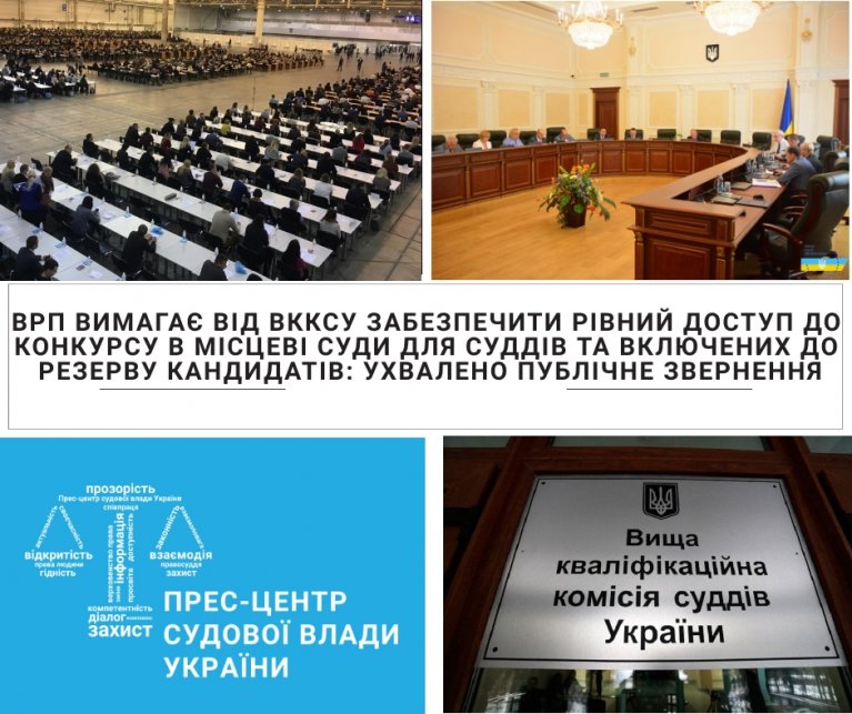 Крім того, 11 липня 2019 року до Вищої ради правосуддя надійшло звернення від 188 суддів місцевих судів України, у якому зазначено, що конкурс, оголошений 2 липня 2019 року лише для кандидатів на посаду судді, суперечить вимогам статті 79 Закону України «Про судоустрій і статус суддів» та порушує права суддів, які мають намір бути переведеними до іншого місцевого суду за результатами іспитів, складених у межах процедури кваліфікаційного оцінювання.